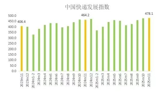 圖1 2023年11月-2025年11月中國快遞發展指數